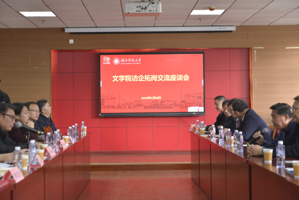 在庆祝学校建校50周年之际,为进一步推动学院与校友双向互动、增进校友与学院感情、促进校企合作,助力2024届毕业生高质量就业,2023年11月18日,文学院在21A602报告厅召开校友访企拓岗交流座谈会。文学院领导班子成员、应邀企业校友代表、全体辅导员参加本次座谈会。座谈会由文学院党委副书记郭笑笑主持。