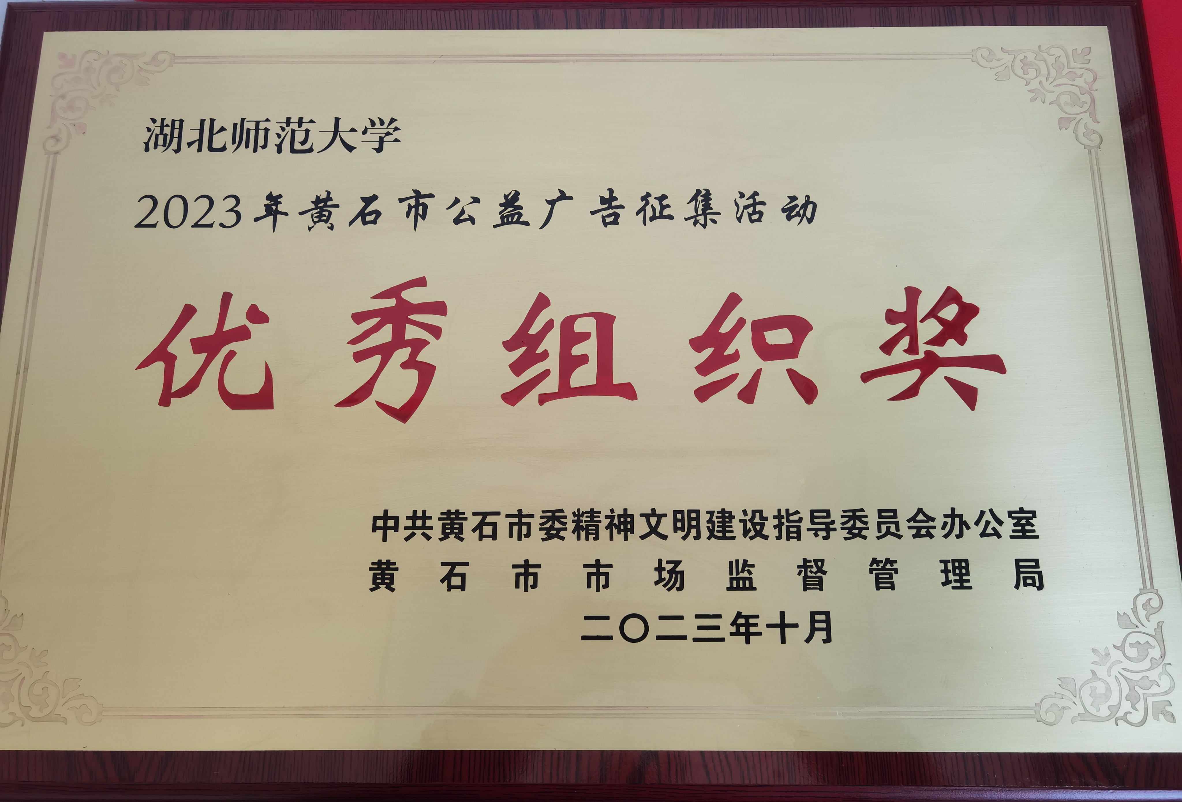 2023年10月,我校在黄石市公益广告征集推广活动中受到表彰,荣获“优秀组织奖”荣誉称号。