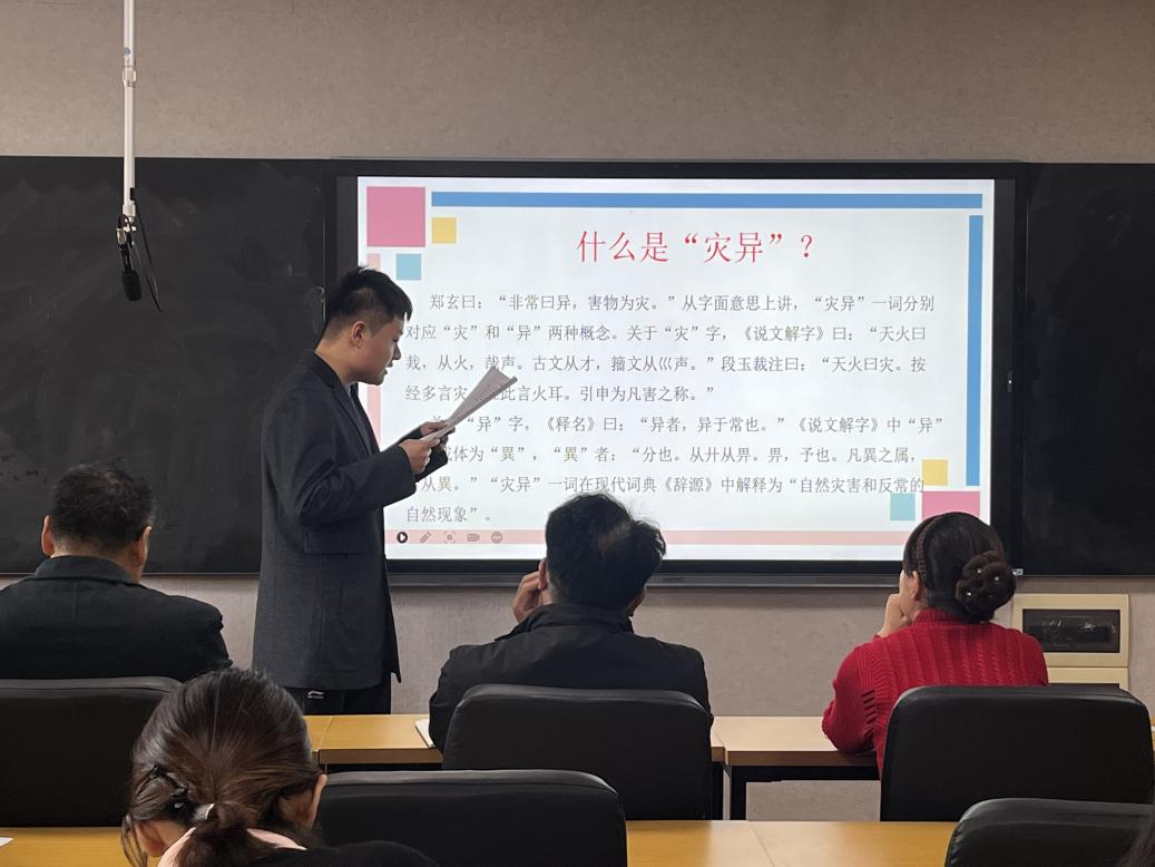 张宸睿同学率先发言,其论文题目是《三国时期灾异文学书写研究》,他认为“灾异”是一个合成词,对应“灾”和“异”两种概念。三国时期灾异发生得极为频繁且记录的灾异种类繁多。同一时期,文人注重创作灾异题材的文学作品,直接促进了三国时期灾异文学书写的繁荣,彰显出了文人强烈的生命意识,折射出高度的现实意义。