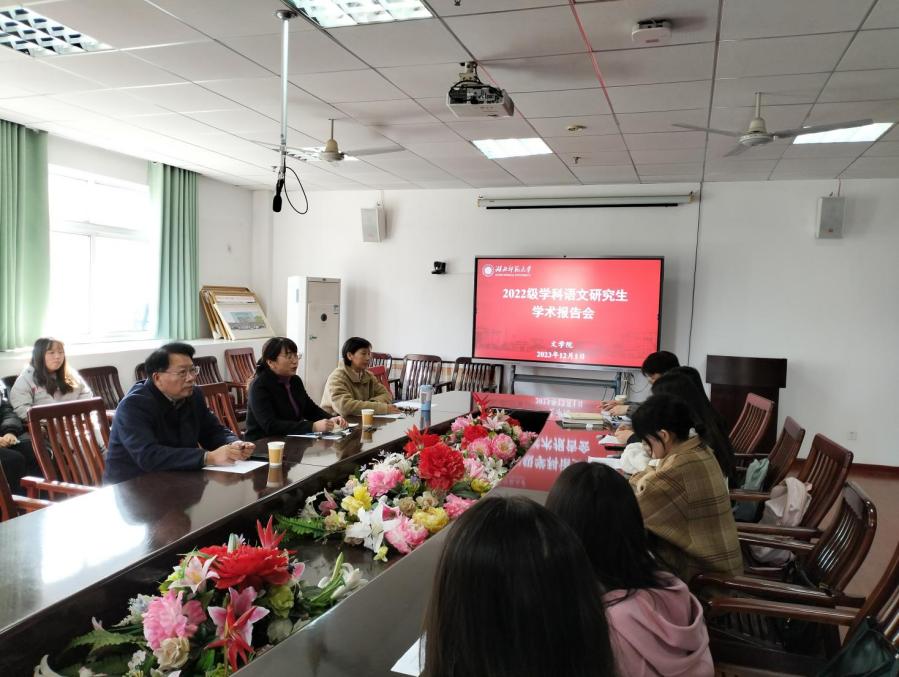 为庆祝湖北师范大学建校五十周年,激发研究生学术研究兴趣,拓宽研究生的学术视野 ,提高研究生培养质量,2023年12月1日下午,文学院学科教学(语文)专业在人文楼21A505开展了学术交流会。本次会议由文学院副院长彭江浩主持,景遐东、张道俊、李国英等硕士研究生导师及学科教学(语文)专业研究生参加了此次会议。