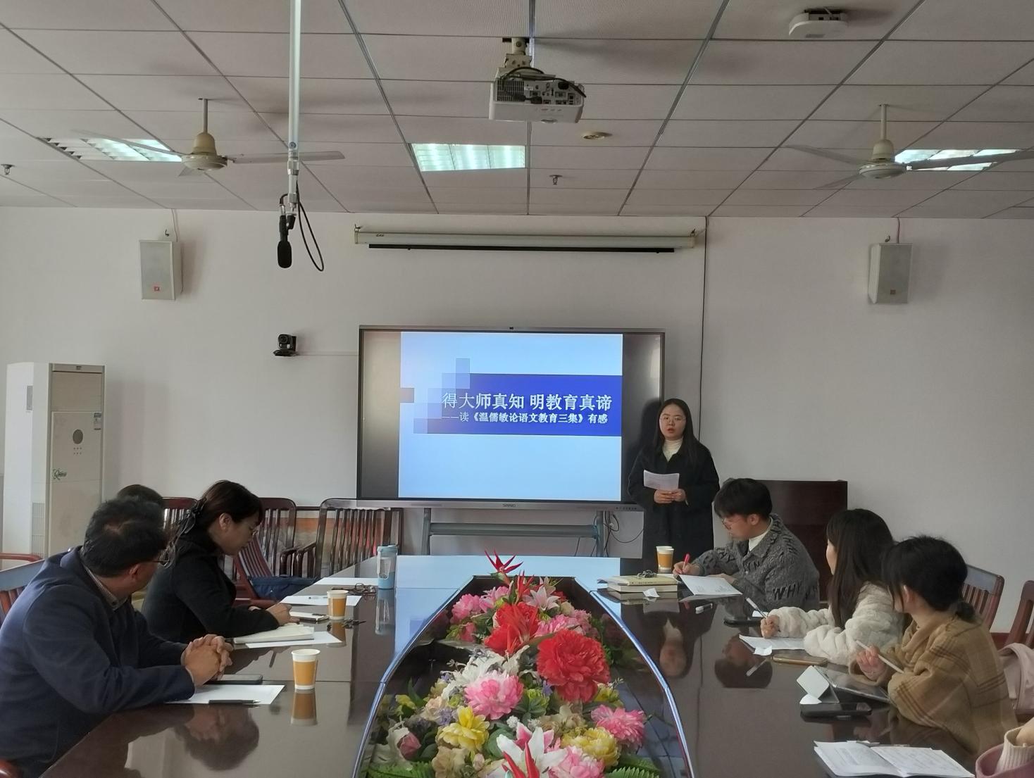 会议伊始,彭江浩指出此次研究生学术交流活动的重要性和必要性,希望研究生们认真对待, 提升自身的论文写作能力,并对报告会程序进行了说明。随后,各位同学依次进行汇报。程倩同学分享了自己阅读《温儒敏论语文教育三集》的感受,她认为作者善于从多角度思考、研究语文,注重培养学生对语文学习的兴趣。张小丽同学聚焦于苏霍姆林斯基的著作《给教师的一百条建议》中所提到的教师职业特点、智育的主要任务及其实施、教师应具备的素养等方面,论述其实用价值。赵淑雅同学围绕分析课堂学情、创新课堂教学模式、处理课堂节奏等实际问展开对《美其所美——王崧舟讲语文课怎么上》一书的讨论,其间引用了许多生动的案例。吴燕婷同学运用思维导图的形式,重点从教学目标的编写和教学的切入点两方面分享《语文教学设计:优化与重构》的读后心得。 赵乐美同学立足当前高中古诗词教学现状,提出微课与高中古诗词融合教学的相关策略。宋玉洁同学从项目式学习的含义、构成要素、操作程序、设计框架入手,并结合案例对这一理念展开详细分析。彭扬同学从宏观、中观、微观层面梳理《语文教育评价》的内容,对语文教育评价三大范式的优缺点作了讲解。刘伶燕同学重点论证了ChatGPT之于写作教学的“能”和“不能”。