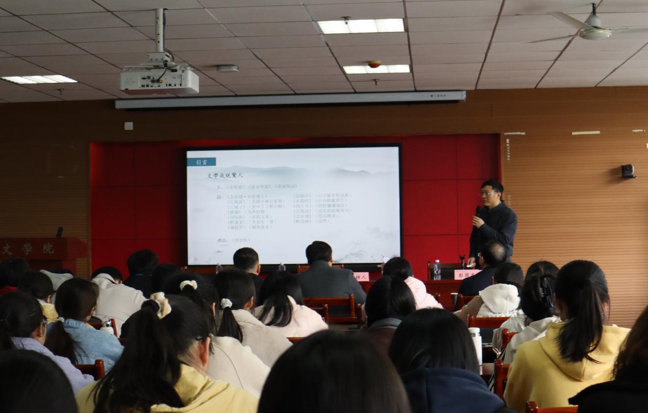 为促进文学院师生学术交流,营造良好学术氛围,2024年3月19日下午,华东师范大学教授、中国古代文学理论学会副会长彭国忠应邀来文学院作题为《苏轼在元丰五年》的学术讲座。此次学术讲座在人文楼A座602报告厅展开,会议由文学院王守雪教授主持,文学院部分教师、研究生和本科生参加此次讲座。
