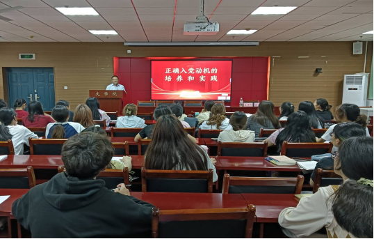 陈文斌授课主题为《正确入党动机的培养和实践》,他从“入党动机的内涵”“要端正入党动机”“如何端正入党动机”“以实际行动入党”四个方面向同学们讲述了正确入党动机的培养和实践。陈文斌指出,入党动机就是一个人要求入党的内在原因和真实目的,正确的入党动机应当要坚定共产主义远大理想和中国特色社会主义共同理想,要树立全心全意为人民服务的宗旨意识,要自觉发挥先锋模范带头作用的觉悟;而端正正确的入党动机就要做到主动接受党组织的培养教育,学习理论、科学文化和党的基本知识,加强党性修养和实践锻炼。