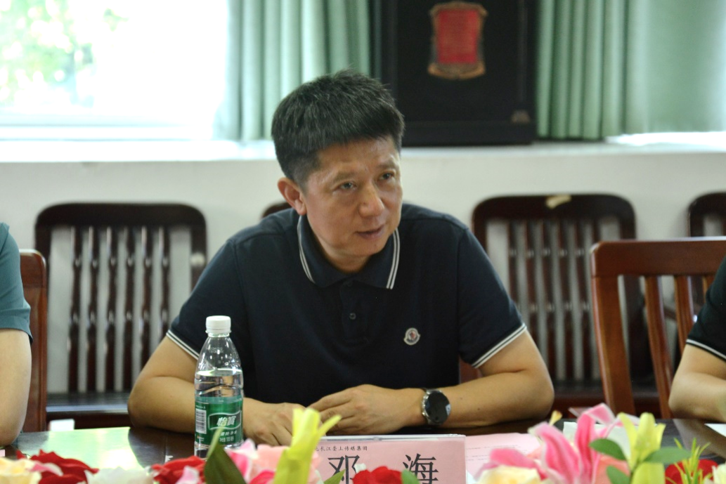 邓海在讲话中介绍了湖北长江垄上传媒集团的发展历程、发展理念和企业现状,分享了对于传媒行业发展前景的看法,并表示将积极支持校企共建研究生工作站。