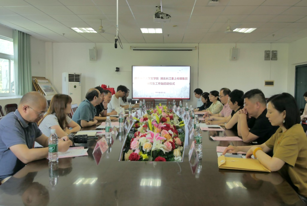 5月14日下午,湖北师范大学文学院、湖北长江垄上传媒集团共建研究生工作站启动仪式在湖北师范大学人文楼21A505会议室举行。湖北长江垄上传媒集团党委书记、董事长邓海,黄石广播电视台党委书记、台长贾方军,湖北长江垄上传媒集团人力资源部主任刘军等业务骨干,以及湖北师范大学文学院党委书记车录彬、研究生院副院长陈引兰出席启动仪式。仪式由湖北师范大学文学院副院长彭江浩主持。文学院新闻与传播专业硕士生导师、研究生代表等参加活动。