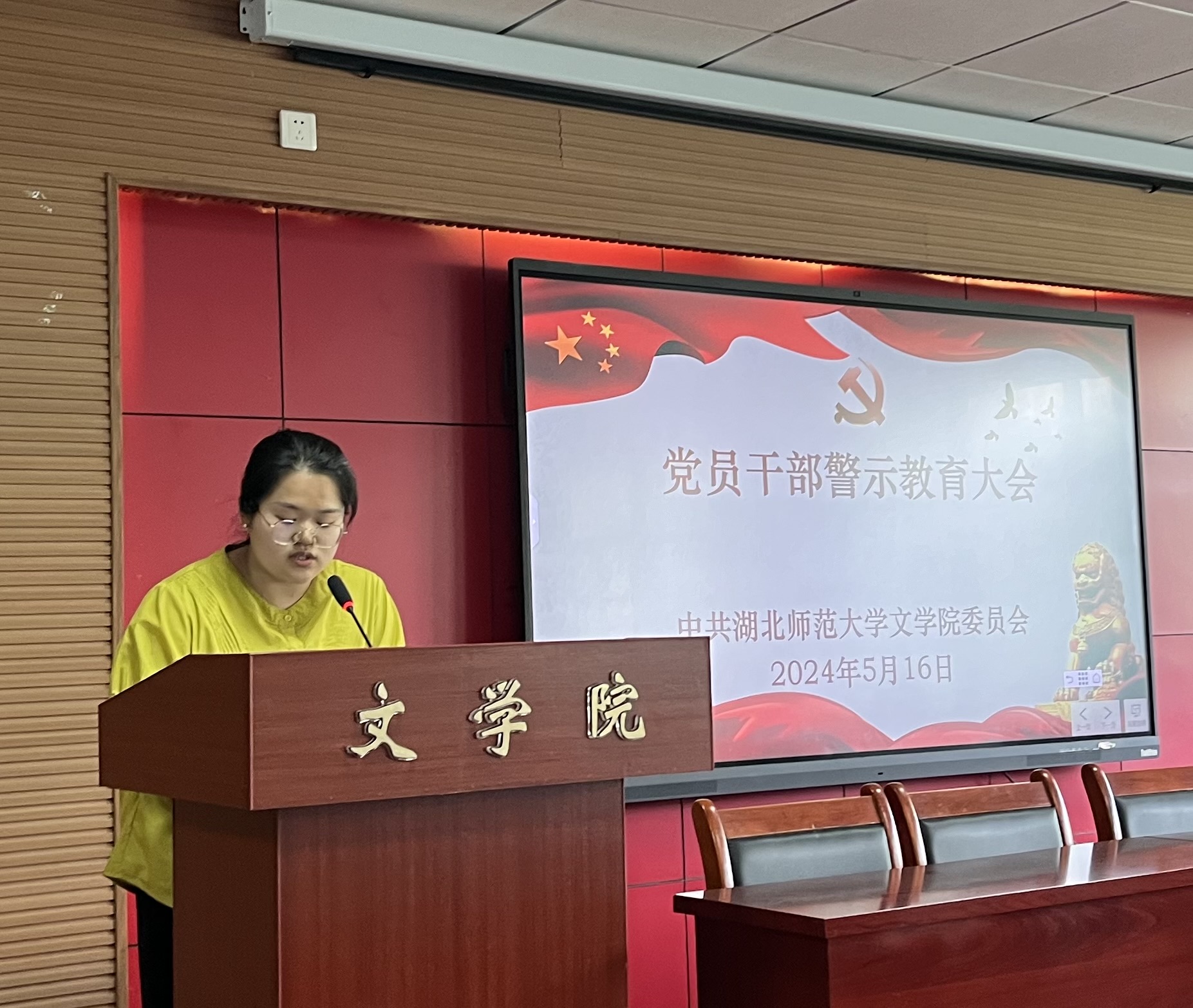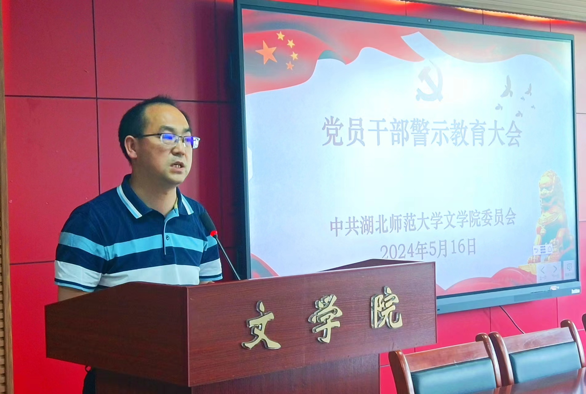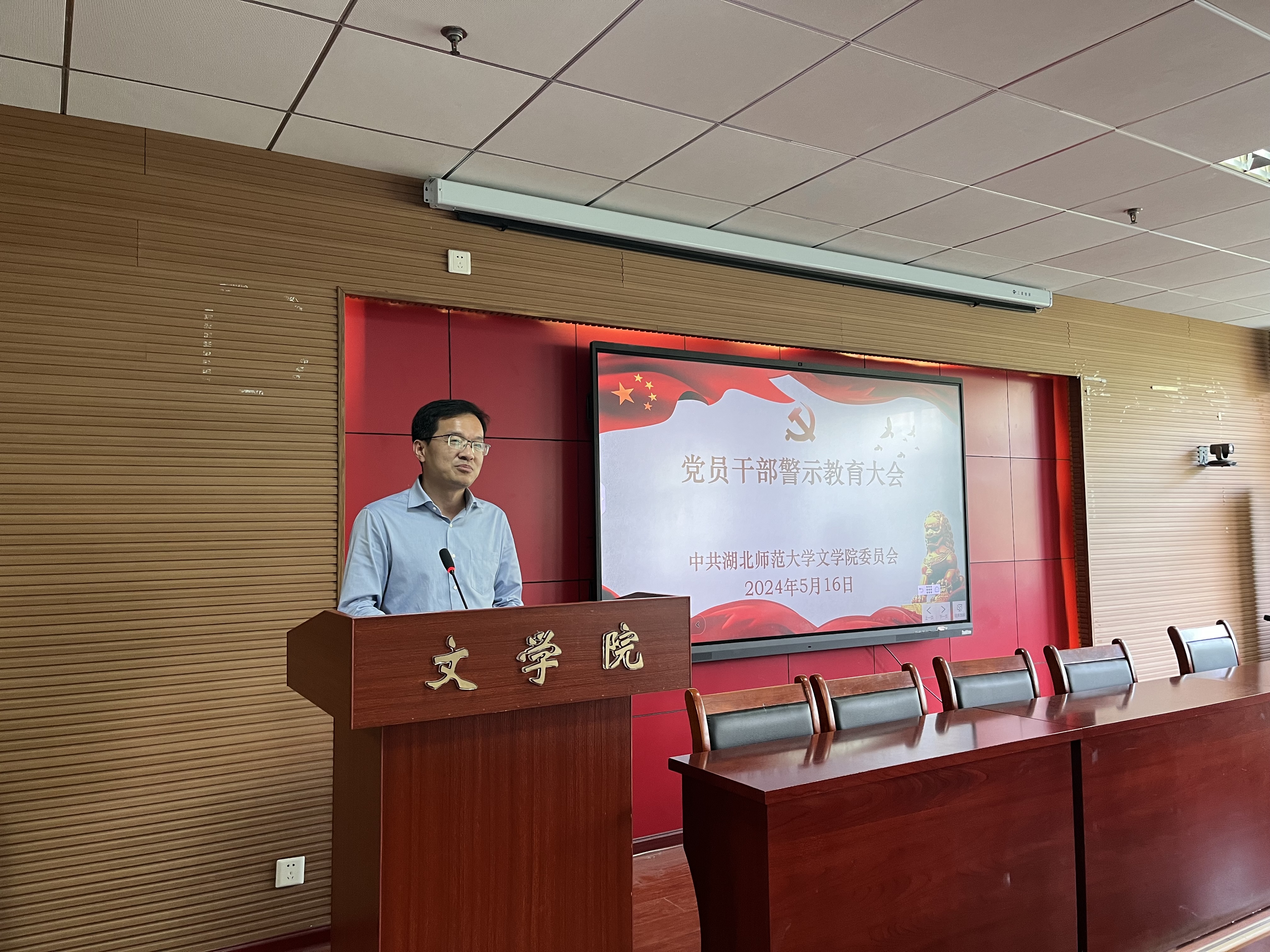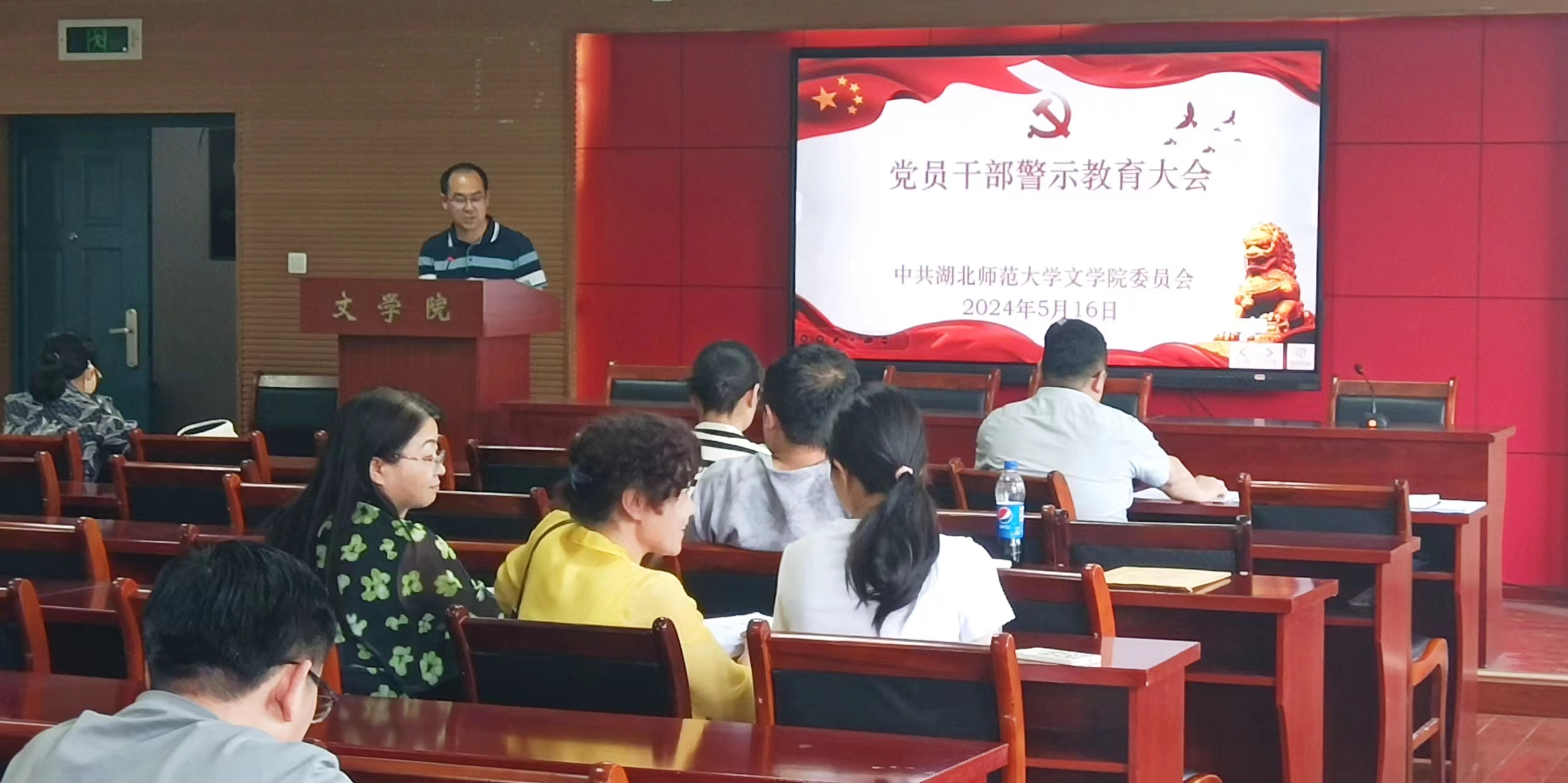 2024年5月16日,文学院在人文楼21A602报告厅召开党员干部警示教育大会,集体观看警示教育专题片,深入剖析违纪违法典型案例,教育引导党员干部知敬畏、存戒惧、守底线。学院领导班子成员、全体党员干部参加了集中学习教育。