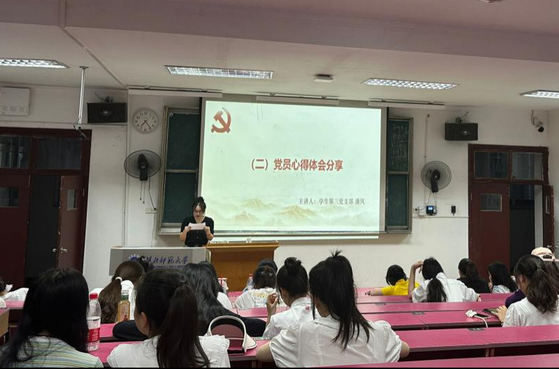 分享学习体会环节,学生第一党支部尚清同志、第二党支部戴阳同志、第支部潘凤同志与大家分享学习体会。们表示,通过本次学习更加深入了解习近平总书记系列重要讲话精神、《中国共产党纪律处分条例》《序言》精神等内容。作为一名共产党员,要加强理论学习,要学思用贯通、知信行统一牢记全心全意为人民服务的宗旨。