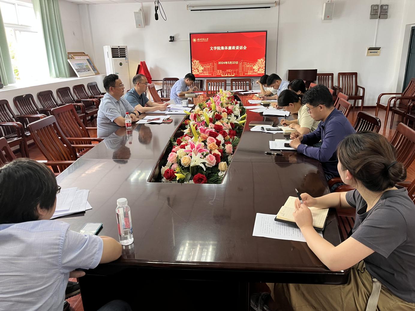 为深入开展党纪学习教育,强化党员干部廉洁履责意识,2024年5月23日,文学院党委在21A505会议室开展集体廉政谈话会。学院全体领导班子成员、党委委员、各师生支部书记参加廉政谈话会,会议由院党委书记车录彬主持。