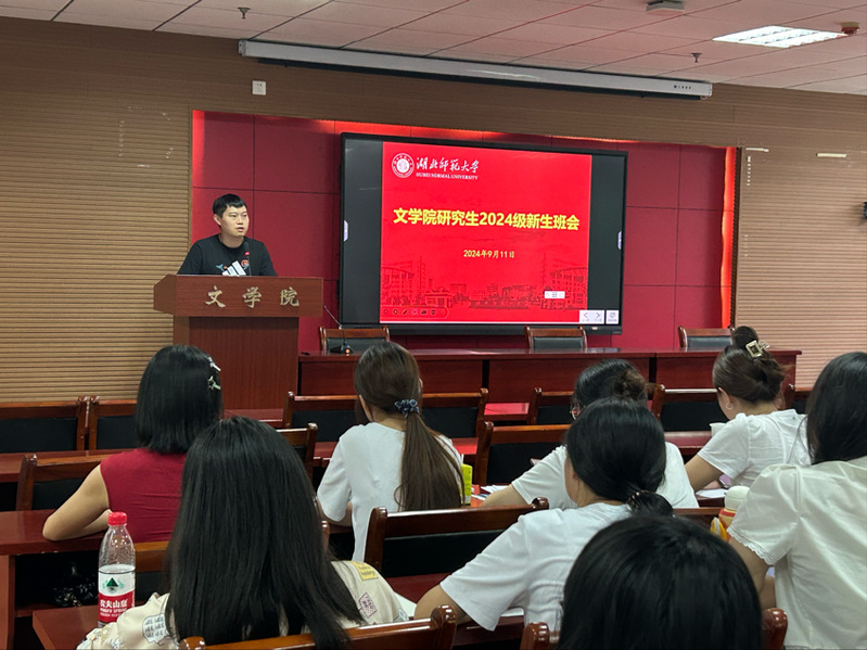 秋光为序扬千帆,逐梦启航迎新程!为引导研究生新生更快转变身份角色、更好融入新的校园生活、更优适应新的学习环境,2024年9月11日下午,文学院于21A602召开2024级研究生新生班会。文学院教学办主任曾颖、全体2024级研究生新生参会。会议由文学院学工办主任张力主持。