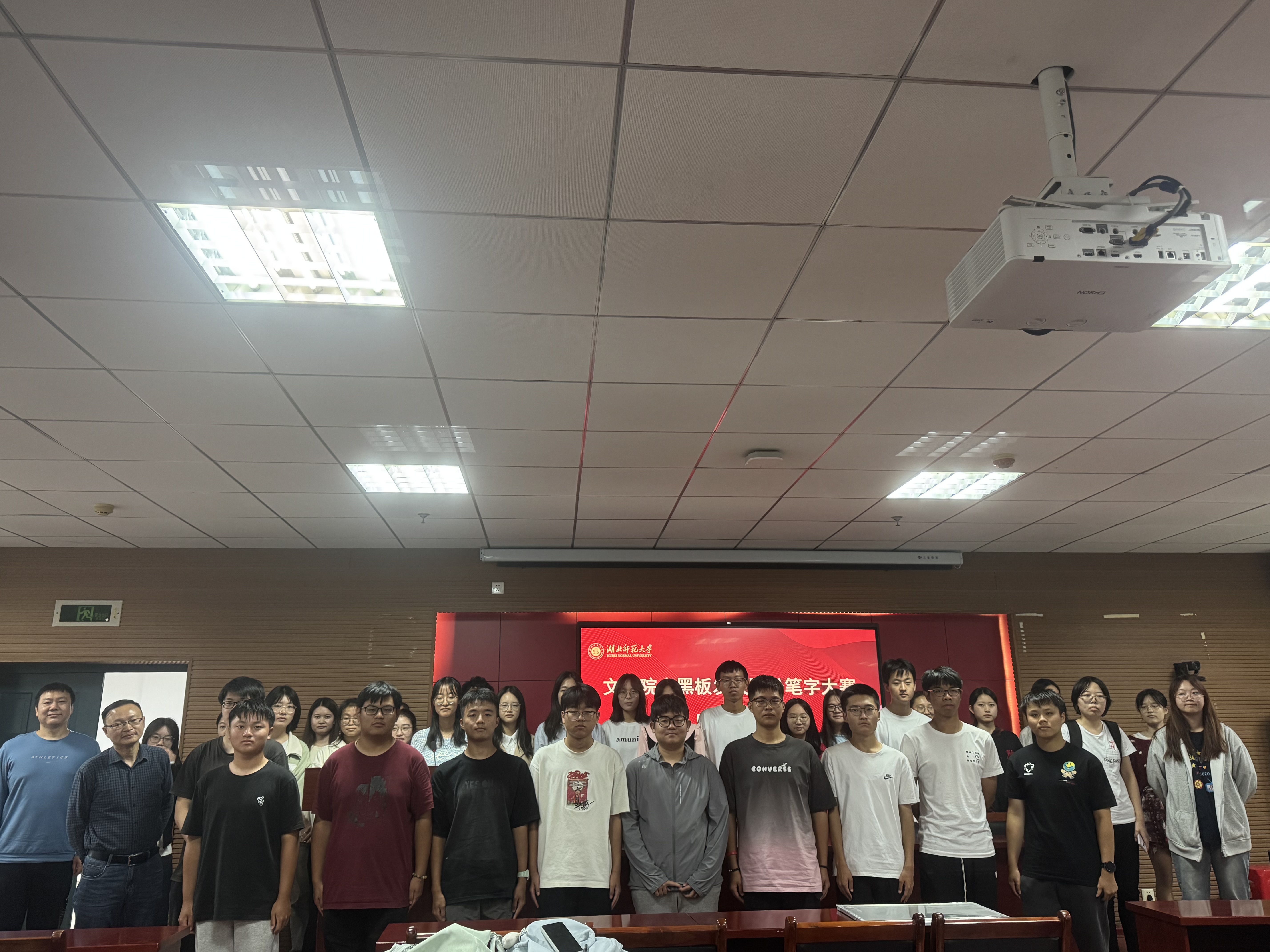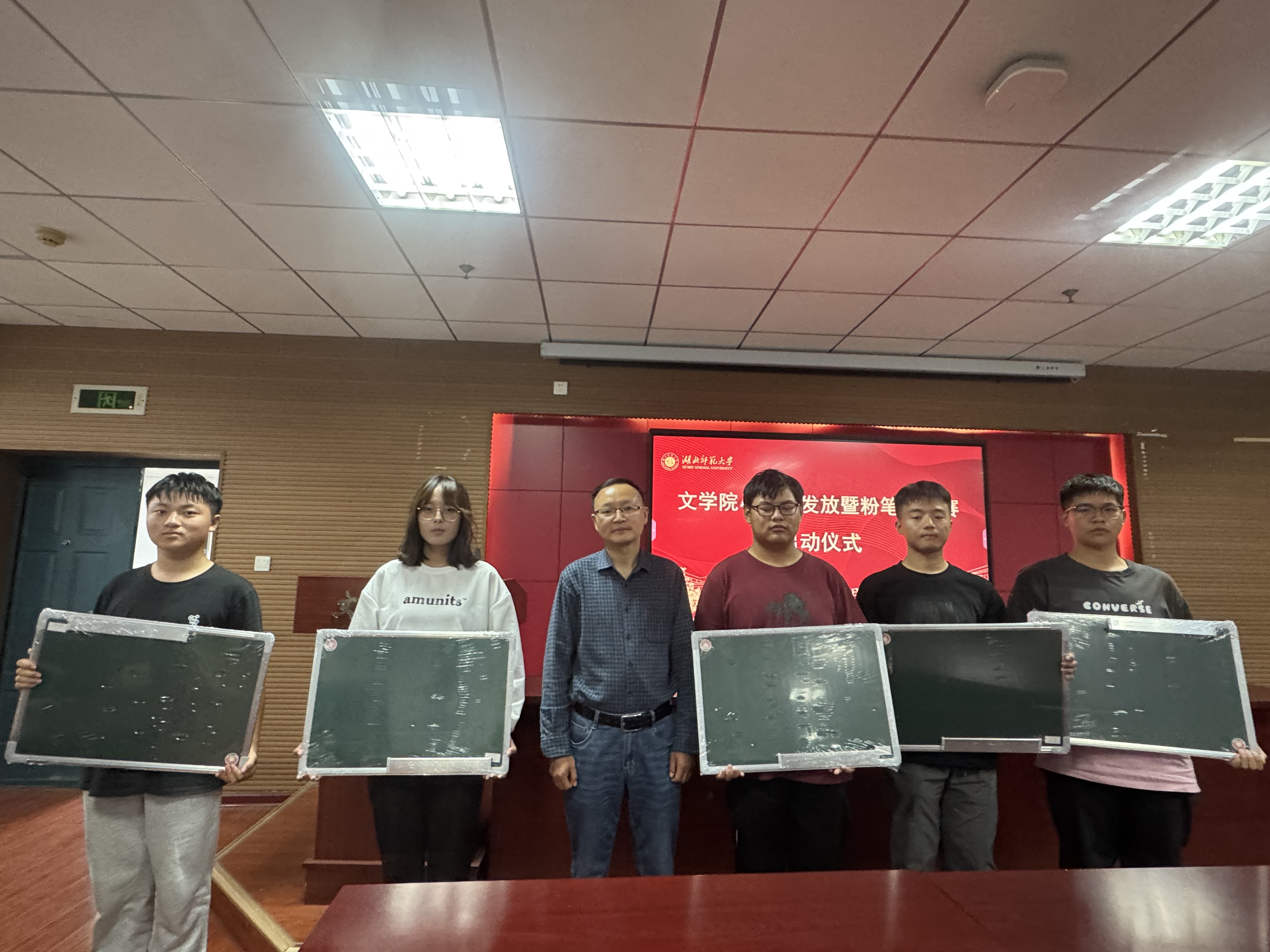 为弘扬中华优秀传统文化,传承汉字书写之美,夯实师范生的教学基本功,营造浓厚的本科教育教学审核评估的氛围,2024年10月10号下午,文学院在人文楼21A602报告厅举行“小黑板发放暨粉笔字大赛启动仪式”,副院长杨文军,2022-2024级汉语言文学、汉语国际教育各班班主任,教学办主任夏晓庆以及各班学生代表等出席。