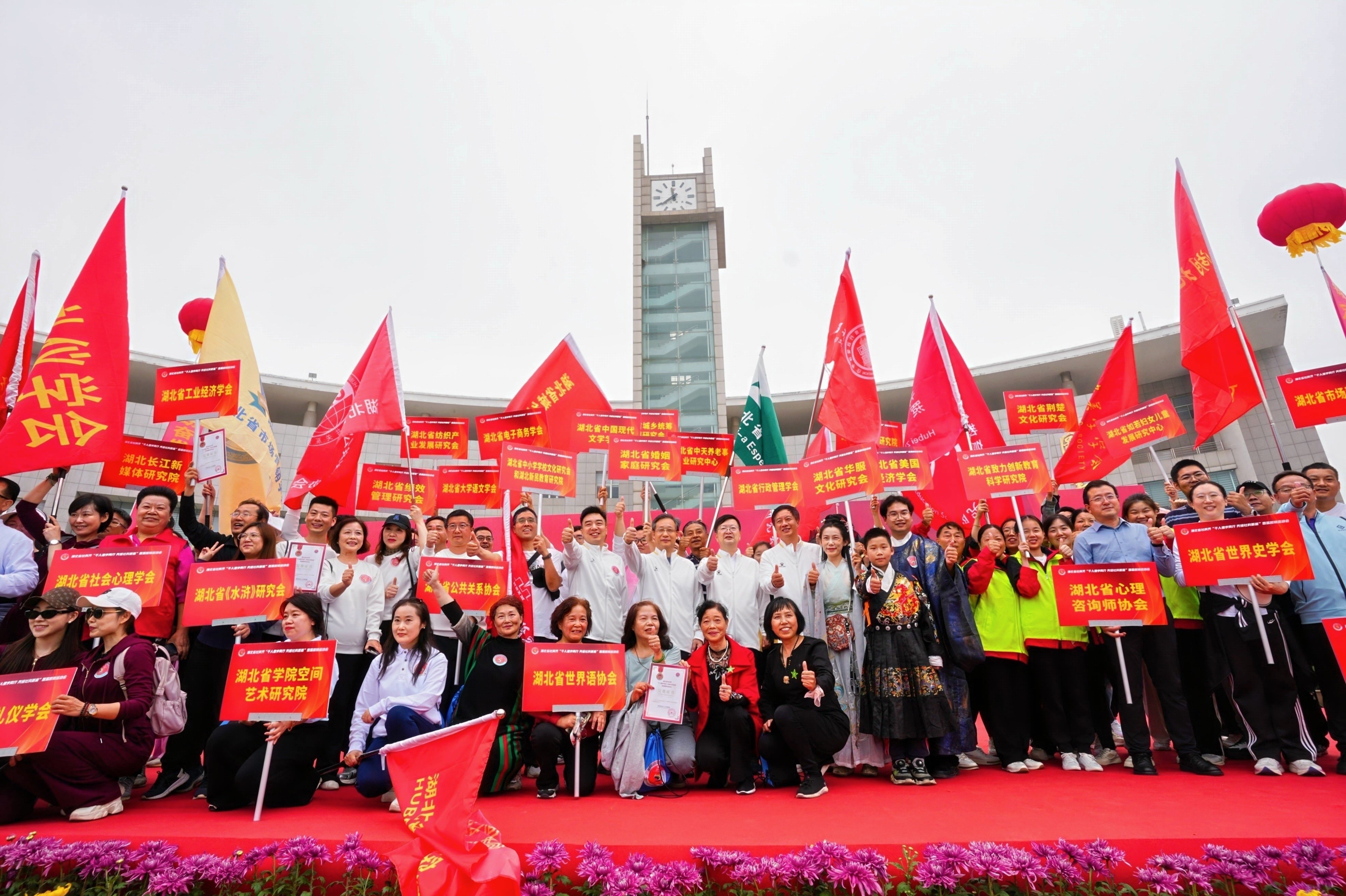 11月16日上午,由湖北省社科联、湖北省教育厅、湖北省民政厅指导,湖北经济学院、湖北省体育理论学会主办的“千人健步同行共绘社科新篇”湖北省社科界首届趣味运动会在湖北经济学院举行。湖北省社科联党组书记、常务副主席刘爱国出席开幕式并讲话;湖北经济学院党委书记高义勇,湖北省民政厅党组成员、副厅长程涛致辞;奥运冠军汪周雨作为运动员代表发言。来自湖北省社会科学界110家社会团体、基金会和民办非企业单位的近千名社科人齐聚一堂、共襄盛会。