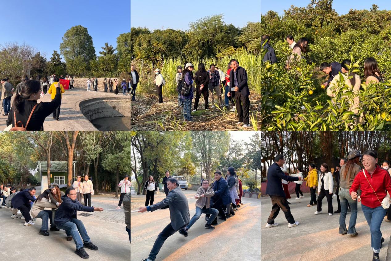 游园活动地点选在鄂州花湖枸骨生态园,该园位于花湖镇胄山村,东临花湖机场核心区,北接花马湖畔,占地2800多亩,因园内有近千棵枸骨树而得名。老师们首先参观了枸骨生态基地,虽已初冬,枸骨林仍然翠绿如初,大片红红的枸骨果在蓝天白云的映衬下显得格外赏心悦目。在桔园,各种桔子、柚子正值成熟,挂满枝头,大家在这个收获的季节体验了一次现场采摘的乐趣。之后,老师们分为四个小组先后进行了拔河、猜拳过河和原地踏步一分钟的趣味比赛。在欢声笑语中,此次活动顺利结束。