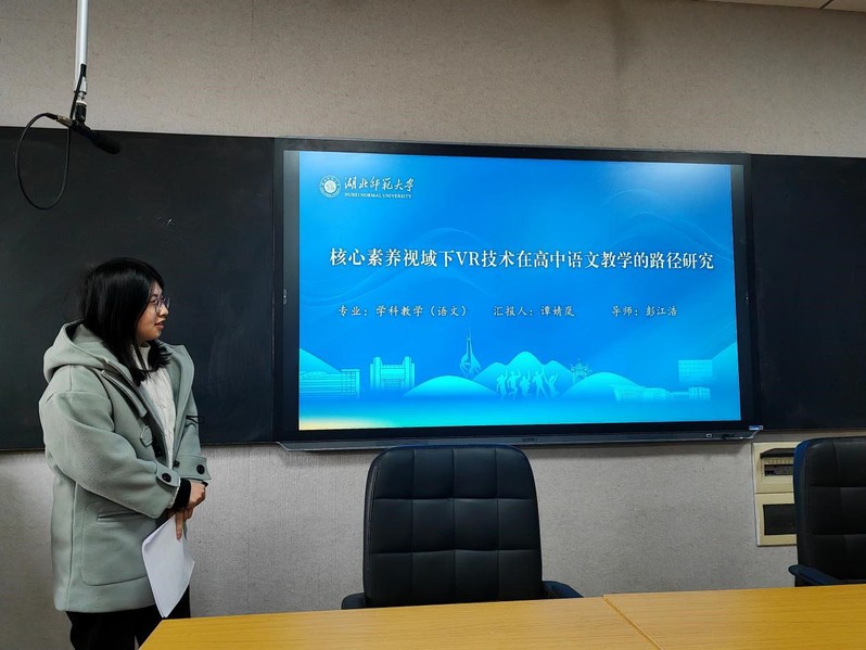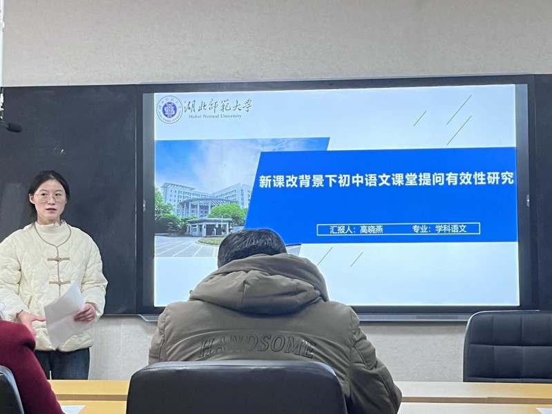 为激发研究生学术创新活力,拓宽研究生的学术视野,提高研究生培养质量,2024年12月30日下午,湖北师范大学文学院在A506会议室举办了学科教学(语文)研究生的学术报告会,五名研究生代表分别交流展示他们的研究成果。报告会由学科教学(语文)方向负责人彭江浩主持,王成、常璐、李洪亮等硕士生导师及该专业研一研二的研究生参加了此次活动。