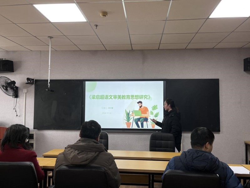 接着,五位研究生依次分享研究成果。袁佳馨的《梁启超语文审美教育思想研究》分析了梁启超先生语文审美教育思想的产生背景、内涵及当代意义,认为其语文审美教育思想为语文阅读教学提供了思路和方法。