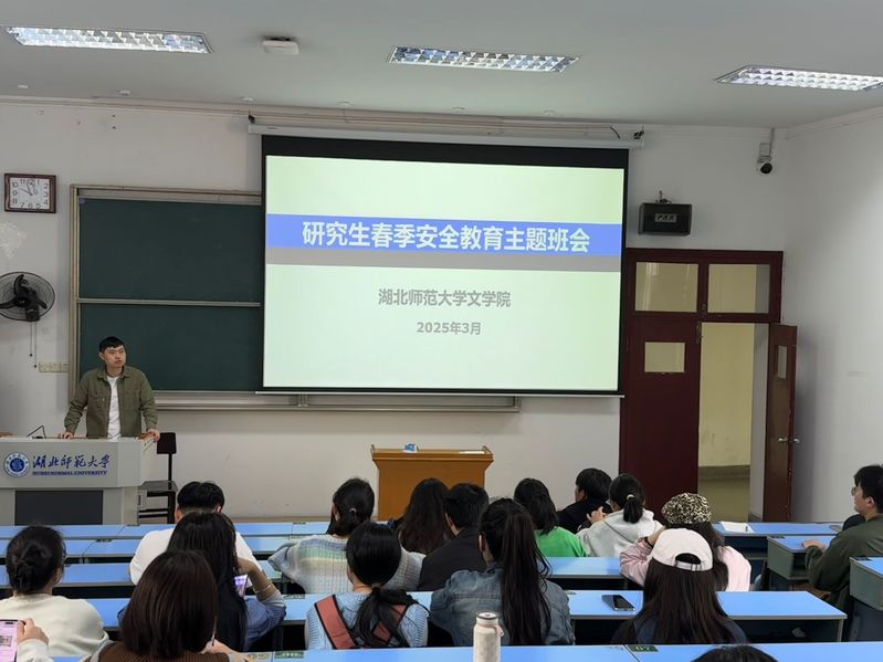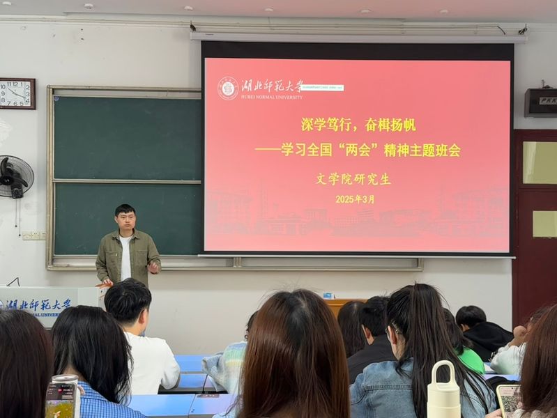 春来潮涌,奋楫扬帆,在催人奋进的春天里,全国两会胜利召开!2025年3月27日上午,文学院于教育大楼1J23教室召开全国两会精神学习暨春季安全教育主题班会。文学院全体2024、2023级研究生和2021级在校毕业生参加班会。会议由辅导员张力主持。