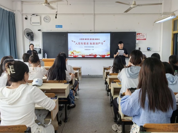 为深入贯彻习近平新时代中国特色社会主义思想,扎实推进入党积极分子的培养教育工作,提升入党积极分子的党性修养,2025年4月17日下午,文学院于教育大楼1206教室举行分党校第34期入党积极分子培训班党课第二讲。校党委组织部副部长应娜担任主讲嘉宾,培训班全体学员参加学习。