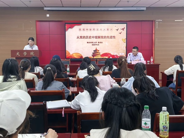 为深化教育引导入党积极分子对中国共产党的性质、宗旨、纲领、路线的学习和认识,坚定理想信念,提升党性修养,2025年4月24日晚,文学院分党校于人文楼21A602举行入党积极分子培训班党课第三讲。学校党委统战部常务副部长熊荣伍担任主讲嘉宾,培训班全体成员参加学习。