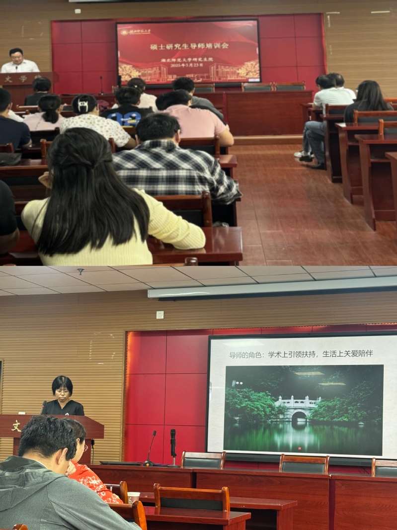 2025年5月23日,湖北师范大学文学院联合研究生院举办了一场研究生导师培训会。本次培训会邀请了北京大学的董秀芳教授进行专题讲座,文学院院长李治平、副院长彭江浩、杨文军、研究生院副院长周英杰以及全校研究生导师代表参加培训活动。