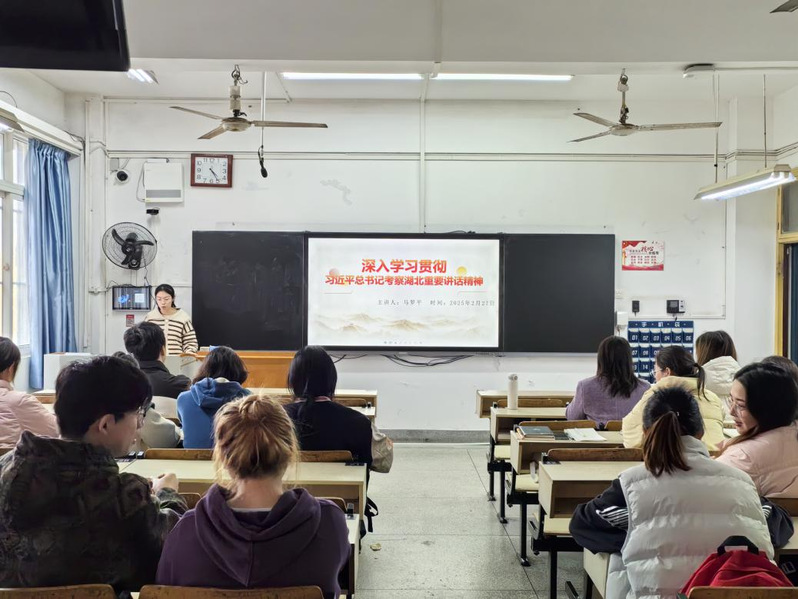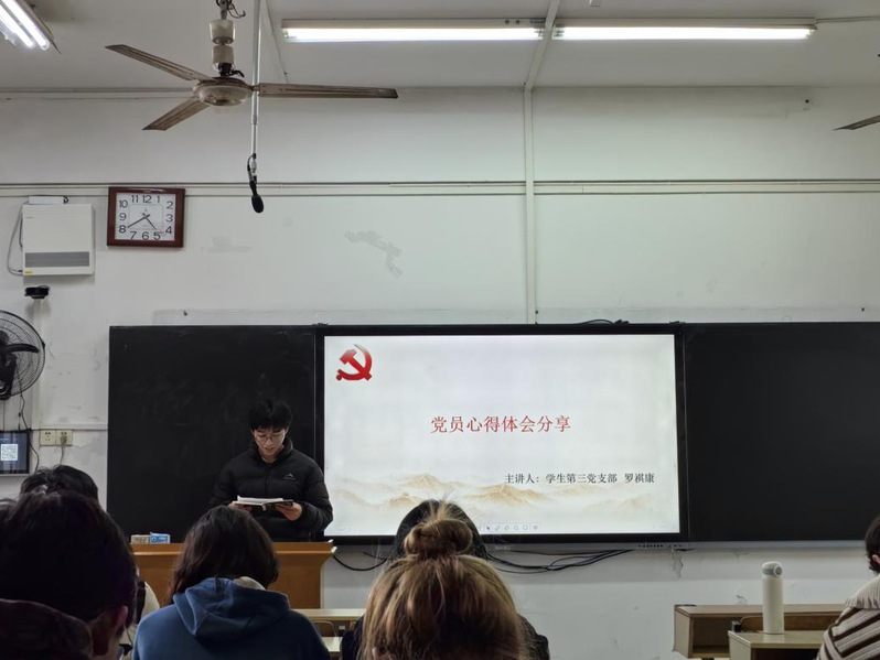 分享学习体会环节,学生党员杨兆贤同志、罗祺康同志谈到,2025年是实现“十四五”规划目标的决胜之年,也是湖北谱写高质量发展新篇章的关键之年。作为新时代青年党员,我们要在今后的生活中,把个人理想融入湖北发展大局,以“功成不必在我,功成必定有我”的信念,脚踏实地、勇毅前行。