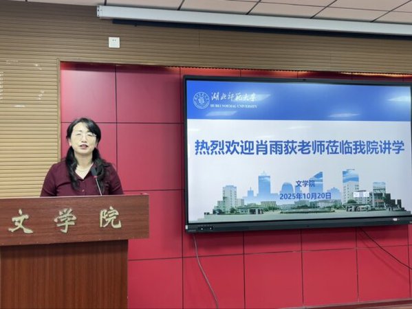 2025年10月20日,文学院在人文楼A座602报告厅举办语文教学实习专题讲座。特邀嘉宾黄石二中语文特级教师肖雨荻以语文教学实习的角色转化与能力突破为主题,为大学生带来一场富有实践指导意义的学术交流。活动由文学院副院长彭江浩主持。文学院相关专业研究生及23级部分本科生参加了讲座。