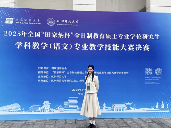 此次大赛决赛暨素质教育时代语文教学改革研讨会于11月7日至9日在杭州举办。作为由全国教育专业学位研究生指导委员会指导、田家炳基金会冠名的国家级权威赛事,“田家炳杯”教学技能大赛以高规格定位、高难度挑战与广泛行业影响力闻名。本届赛事由杭州师范大学承办,来自全国各高校的173名选手参加决赛。决赛环节综合检验选手的教学规划、课堂呈现与临场应变能力,参赛选手需在2小时内完成教学设计与课件制作,随后依次开展15分钟模拟授课与5分钟现场答辩。