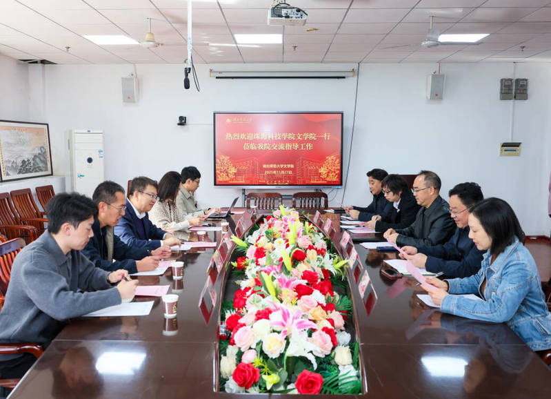 2025年11月27日上午,珠海科技学院文学院党委书记张殿宫率调研团队一行到我院调研交流。学院党委书记车录彬、院长李治平及网络与新媒体专业负责人彭静、传播学教研室主任赵亿、实验室主任李永峻等参加交流活动。