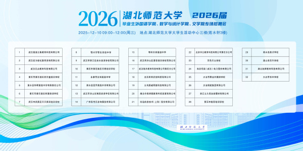 2025年12月10日上午,由湖北师范大学文学院、外国语学院、数学与统计学院联合主办,湖北师范大学招生与就业工作处、留黄就业工作站承办的2026届毕业生专场招聘会在大学生活动中心成功举办。学校招生与就业工作处负责人、相关学院领导、毕业班班主任、辅导员及2026届毕业生到场参会。