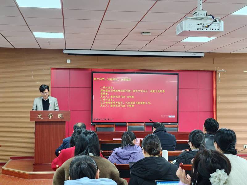 3月19日下午,文学院党委在人文楼21A602会议室组织开展树立和践行正确政绩观学习教育专题学习研讨。学院班子成员、全体教职工党员及学生党员参加会议。会议由学院党委书记车录彬主持。