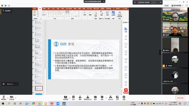 2021年11月14日上午8点30分至11点30分,中国社会科学院经济研究所研究员、《中国经济史研究》编辑部主任高超群于腾讯会议为湖北师范大学历史文化学院师生作了以“试析近代企业产权保护制度——以大生纱厂为例”为主题的精彩演讲。本次演讲由湖北师范大学历史文化学院李柏林教授主持。湖北师范大学历史文化学院蔡明伦教授、张泰山教授和邱晓磊博士、历史学专业本科生及研究生共计数十人一同在线聆听此次演讲。