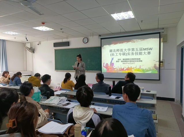 11月11日下午两点半,2021年MSW(社工专硕)实务技能大赛在人文楼A座304教室顺利举行。本次实务技能大赛共有六支队伍参赛,大赛评委由历史文化学院段丹、张强、黄丹、钟祥虎、穆昭阳五位老师组成,段丹老师担任评委组组长,此次比赛还特别邀请研究生院的吕露老师作为嘉宾。主持人由21级社工研究生同学勾梦婷担任。