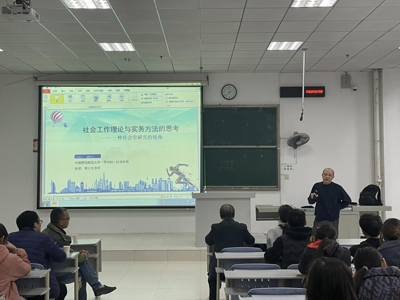 首先,谭明方老师就社会学理论与社会工作理论的关系、社会工作理论在实务研究与项目中的作用和社会工作实务方法的理论适用与应用前景等方面进行了讲演,引发了同学们的思考和共鸣。随后,进入师生互动环节,同学们都积极踊跃都向老师提问,和老师交流自己在学习上的困惑和自己的所思所想。