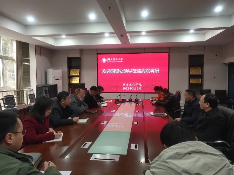 2022年3月3日下午,校国有资产与实验室管理处处长冯斌率副处长藏海成、洪文以及相关科室负责人到历史文化学院调研“师范专业认证”相应实验室、仪器设备和教学与办公硬件等的准备工作,历史文化学院党总支书记李涛、院长蔡明伦、副院长李建刚、张强和党政办、教学办等负责人参加调研座谈会。
