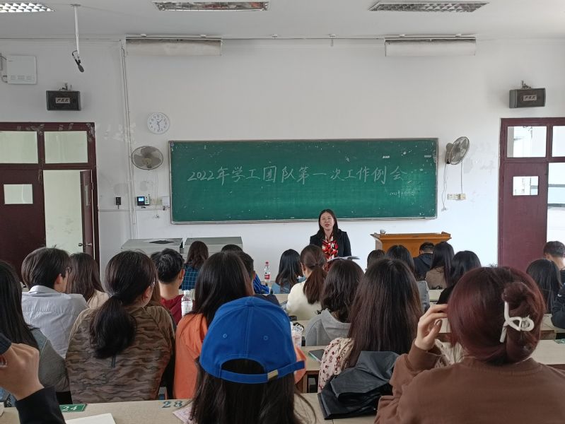 2022年3月11日中午12:30,历史文化学院2021-2022年学第二学期第一次学生工作会议在教育大楼1j11召开。出席本次会议的有党总支副书记黎哲,辅导员杨绍浩、王雅菲以及第四十四届学工团队全体成员。