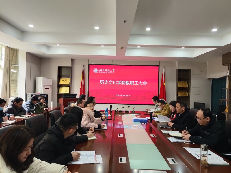 3月24日下午,历史文化学院在21A301会议室召开教职工大会。学院全体教职工参加会议,党总支书记李涛主持会议。