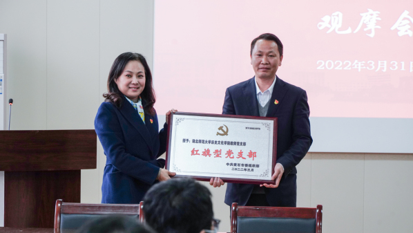 3月31日下午,在音乐学院13311会议室召开党组织会议和党政联席会议观摩会,校党委书记马列军通报喜讯:中共黄石市委组织部发布文件,历史文化学院教师党支部荣获“红旗”党支部荣誉称号,获得市委组织部通报表扬。校纪委书记陆咏梅同志向历史文化学院颁发了奖牌。