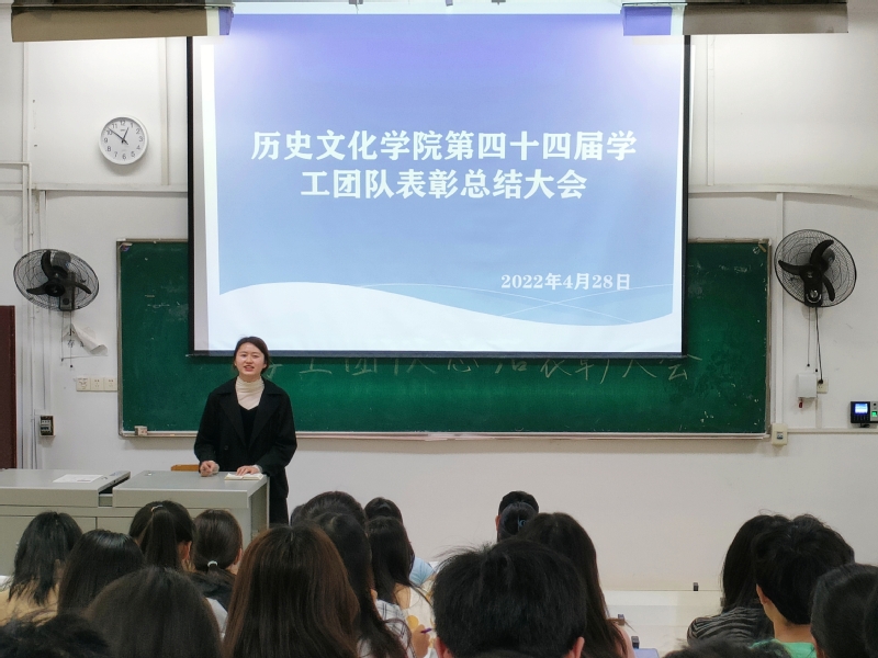 2022年4月28日中午12:30,历史文化学院在教育大楼1J12教室组织召开了第四十四届学工团队总结表彰大会。历史文化学院党总支副书记黎哲,辅导员杨绍浩、王雅菲,党团学负责人,各班班长、团支书、学习委员与会。
