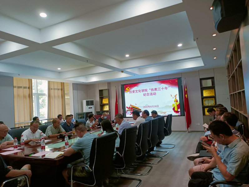 晨曦细雨育桃李,金秋硕果慰园丁,在第38个教师节即将来临之际,为迎接党的二十大的胜利召开,8月28日下午,历史文化学院于人文楼21A301会议室开展 “执教三十年”纪念活动。校党委副书记马列军、历史文化学院领导班子、学院全体执教三十年以上教师、学院全体教职工参加。活动由历史文化学院党总支书记李涛主持。