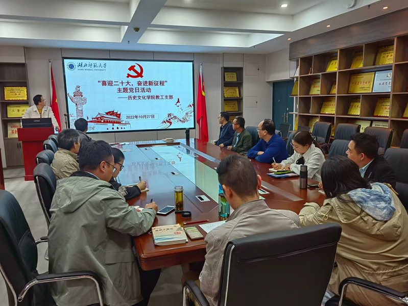 10月27日下午,历史文化学院教工支部在21A301会议室开展10月主题党日活动,活动由历史文化学院教工支部书记穆昭阳主持。
