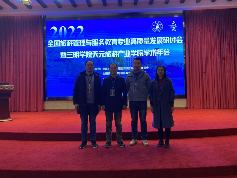 会上湖北师范大学、三明学院、黄山学院代表全国旅游管理与服务教育专业建设联盟单位就教材编写、课程思政建设合作项目进行签约。在首届“天元杯”全国旅游管理与服务教育专业教改论文与本科生毕业论文评选活动中,我院旅游系石倩老师获得首届“天元杯”全国旅游管理与服务教育专业教改论文三等奖,王军、庾君芳、何小林、杨庆、石倩、吴丹老师指导的本科生毕业论文获得优秀论文奖。