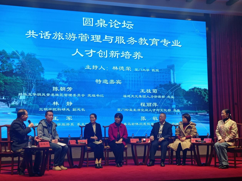 在林德荣教授主持圆桌论坛上,旅游系主任王军代表湖北师范大学历史文化学院参加了聚焦新时代旅游企业需要什么样的人才、如何培养以及如何引导旅游管理专业毕业生沉淀成长等话题的讨论,引起与会嘉宾强烈共鸣。