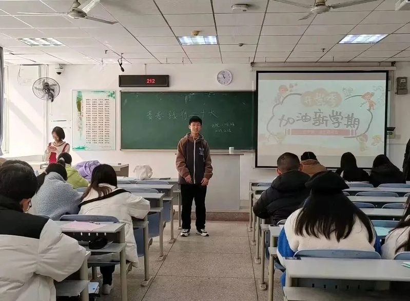 2003班同学重温党的二十大主题、经历的三件大事、中国共产党的中心任务等党的二十大相关内容。随后,以习近平用典-“革故鼎新”为引,进行“习语习廉”的主题学习。党员代表分享学习感悟。他们表示经过对以上内容的学习,以后不仅会专注于自己的专业知识学习,也会回应社会关切,脚踏实地地为实现中华民族伟大复兴梦贡献自己的青春力量。2005班在青春践行二十大主题中,围绕二十大的主题进行了回顾,并邀请党员代表上台发表自己的感想及假期收获,班主任刘健老师做总结发言,教导我们把二十大的思想铭记于心,同时我们牢记习近平总书记嘱托,矢志不渝跟党走。青春向党,不负韶华,功成不必在我,但功成必定有我。让我们在美好的青春中融入深情的中国梦,铸就无悔青春。