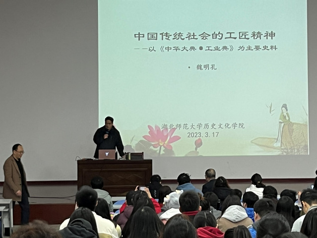 2023年3月17日,在人文楼文都大讲堂成功举办“庆祝建校50周年系列学术报告会·磁湖学术活动日”的学术讲座,本此讲座由中国社会科学院“登峰战略”资深研究员、中国社会科学院经济研究所资深研究员、《中国经济史评论》主编魏明孔老师主讲,历史文化学院院长蔡明伦教授主持,历史文化学院老师、本科生、研究生共同参与了本次讲座。