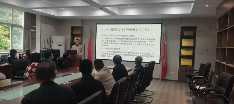 最后,校内指导老师李柏林老师作了如何指导实习生开展班主任工作的专题讲座。