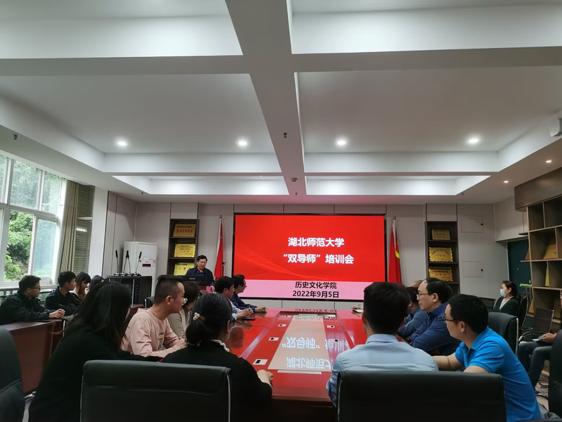 2022年9月5日,教务处与历史文化学院在人文楼学院会议室举办2022年度“双导师”工作第一次集体培训,以提升教师教育改革的质量,强化师范生实践能力训练,对标国家师范专业认证标准,凸显湖北师范大学师范特色。学院主管教学副院长李建刚、教务处负责人与校内外指导老师参加培训。