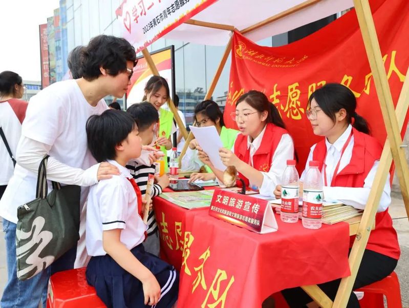 2023年5月14日,由共青团黄石市委主办,湖北师范大学团委、湖北壹玖零染文化产业有限公司协办,在华新1907文化公园开展了“学习二十大,志愿新征程”为主题的青年志愿服务项目展示交流活动。