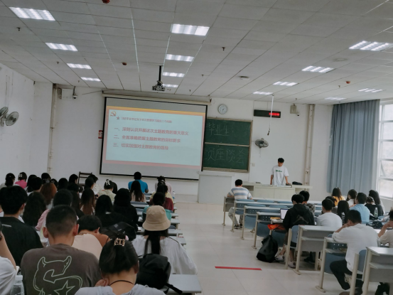 接下来,2001班李志恒与陈江颍两位同志讲授微党课。李志恒同志带领大家认真学习了习近平总书记在学习贯彻习近平新时代中国特色社会主义思想主题教育工作会议上的重要讲话精神。陈江颍同志带领大家学习了深入学习贯彻习近平总书记关于全面从严治党的重要论述精神以及中央纪委网站关于青海省6名党员领导干部严重违反中央八项规定精神问题的通报。