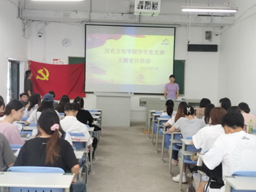 为深入学习宣传贯彻党的二十大精神,将党的二十大精神的学习成果转化为推动高质量发展的实际成效,历史文化学院学生党支部于2023年6月21日在人文楼21AT06开展“主题教育凝心聚魂,实干担当促进发展”的主题党日活动,历史文化学院学生第一党支部书记王雅菲、学生第二党支部书记杨绍浩、全体学生党员参与此次活动。
