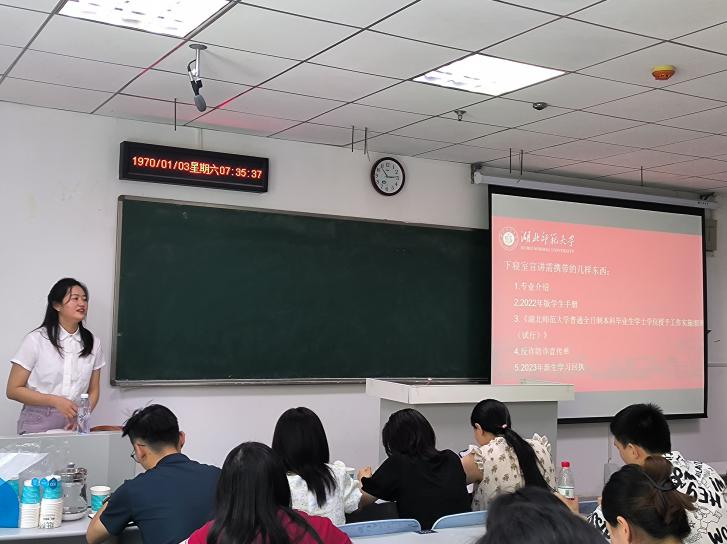 会议第三项,郑甜甜老师介绍迎新工作的具体安排。今年的迎新活动将在9月5日至9月8日展开。我院就四天的迎新工作进行了详细安排部署,广泛动员党员、学生干部等参与到迎新工作中来,为新生送去温暖。