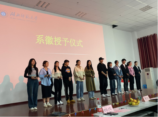 在活动的核心环节,首先是在系徽授予仪式环节,2023级新生依次登台,由院领导、各位企业导师及各位老师们给新生们依次颁发旅游系系徽并合影留念。其次,优秀毕业生和新生寄语环节,由旅游系杨晓帆、陈冯丽以及陈丹丽三位优秀毕业生们向学弟学妹们分享个人的学习和职场经验,并提出期望;新生代表陆宏杨同学也进行了精彩发言。接着,分别由2106、2107和2203班的同学进行才艺表演。
