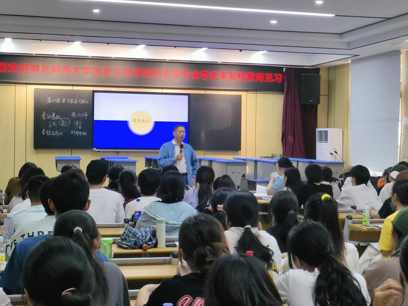 最后,由磁湖中学刘书记进行总结发言,刘书记对历史文化学院22级历史学的同学表示了热烈欢迎,并表示:作为一位历史老师,在每节课都应对同学们进行学法上的指导,可以从材料出发,引发同学们兴趣,做到论从史出,要注重教学技巧,希望同学们从细节出发,从实践出发,在“学”与“思”中收获新知。